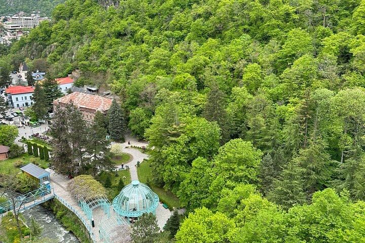 Discover the magic of Borjomi, a hidden gem in Georgia that promises an unforgettable escape. Imagine yourself surrounded by lush green forests, breathing in fresh mountain air, and enjoying the soothing sound of a river flowing from majestic mountains. Borjomi is like Georgia's own paradise.